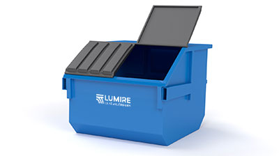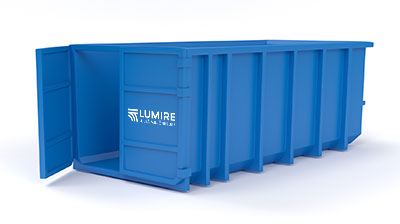 Våra lifterdumpers finns i olika storlekar och rymmer mellan 8 – 15 m³ och har ett öppet utförande, utan lock. Liftdumpern hämtas vid uppgjord plats av Lumire och töms sedan på en godkänd behandlingsanläggning. Behållaren passar för: