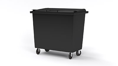 UV-, värme-, kyl-, och kemikaliebeständigt kärl. Kan fyllas med avfall som väger upp till 270 kg.