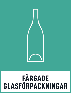 Glasflaskor och glasburkar. Färgade och ofärgade glasförpackningar återvinns var för sig. Återvunna material blir nya produkter! Glasförpackningar återvinns och blir till nya glasflaskor, glasburkar eller isoleringsmaterial.