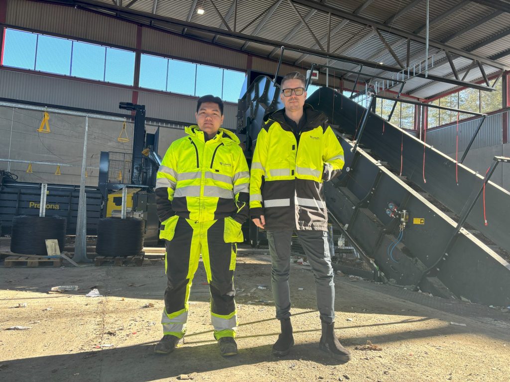 – Det känns bra. Jag har fått längre körsträcka till och från jobbet men det är det värt. Bättre arbetsmiljö när fler fraktioner är samlat i samma anläggning, det är enklare att köra avfallet i olika skeenden i den nya lokalen, säger medarbetare Pairat Wattanalap (till vänster på bild). Per (till höger på bild) tillägger: