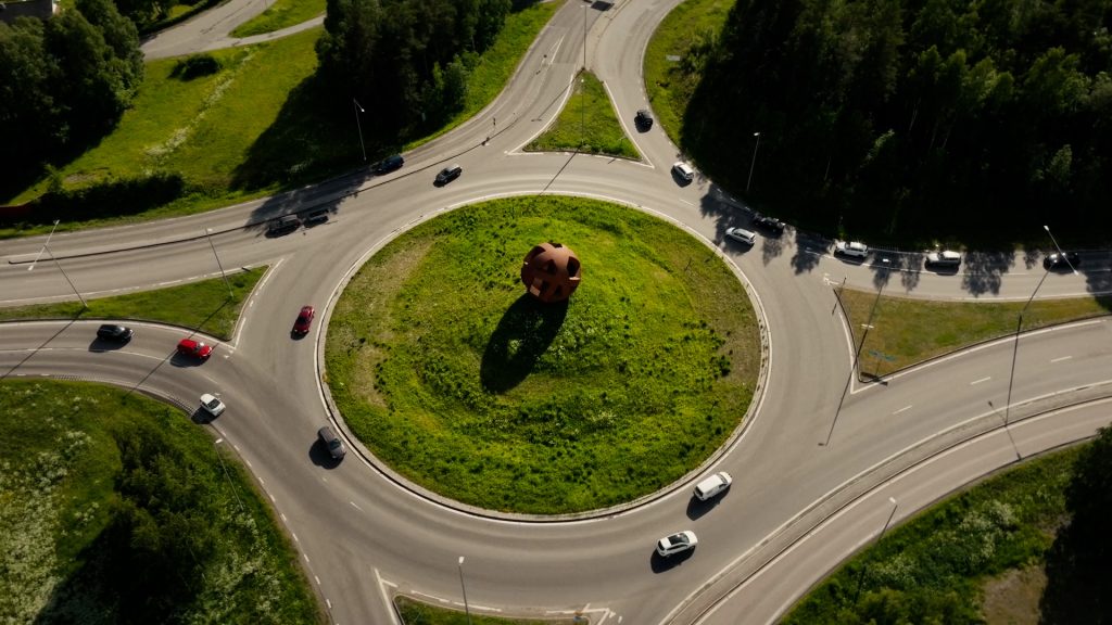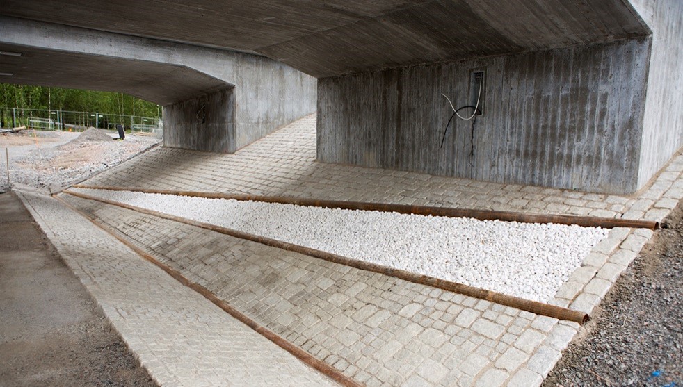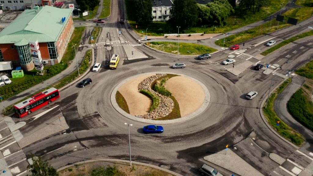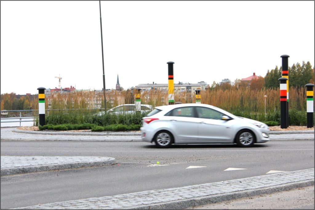 Nya trafiklösningar som underlättar trafikflödet och framkomligheten. Här i området finns flera kluster av rör som fått inspiration från pennflöten.