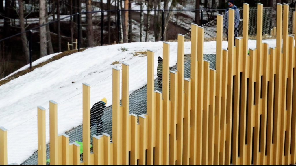 Vid Tuna strand står pumpstation 14 vars tak fungerar som pulkabacke vintertid. Dess högsta punkt har sin utsikt över älven. Intill finns sittbänkar utplacerade för förbipasserande som vill ha en paus i naturen. Ritad av a och d arkitektkontor fick pumpstationen namnet ”Ljusglimt” med inspiration från lekfullheten i en tallskog, där ljusglimtar sipprar fram. Utformningen skapar en trygg och livlig mötesplats för barn och vuxna och bidrar till ett aktivt liv där naturen är en del i vardagen.